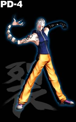 PD-4's greatest advantage is his reach. He has specials that can hit opponents from a distance and in a wide area, but they take some time to execute. He also has a kick combo that can rapidly wear down an opponent's defense.